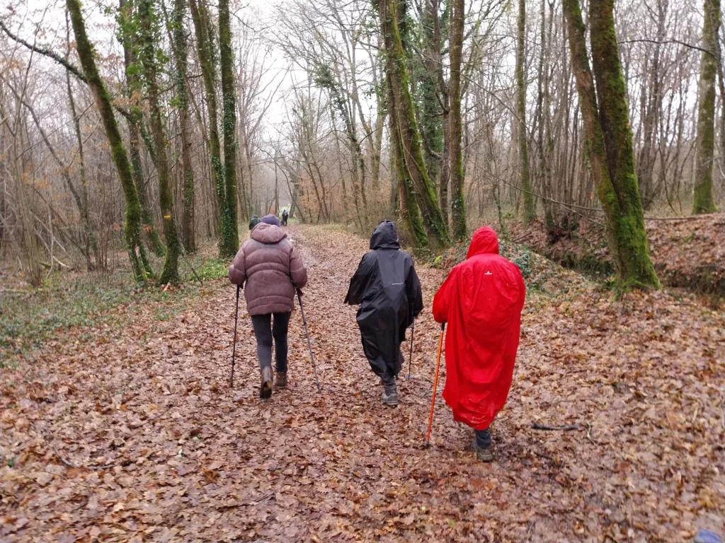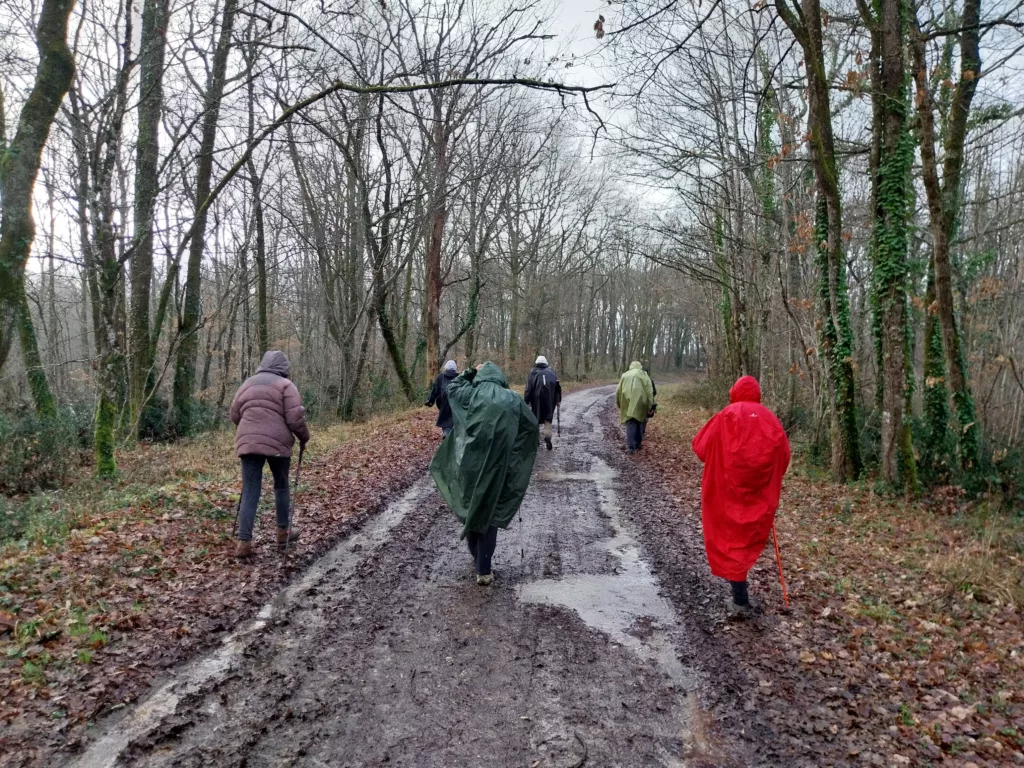 Aujourd’hui la météo annonçait des pluies intermittentes ce qui n’a pas découragé les 12 mordus d’espace et de grand air de se retrouver à Seyches pour une randonnée bien mouillée….