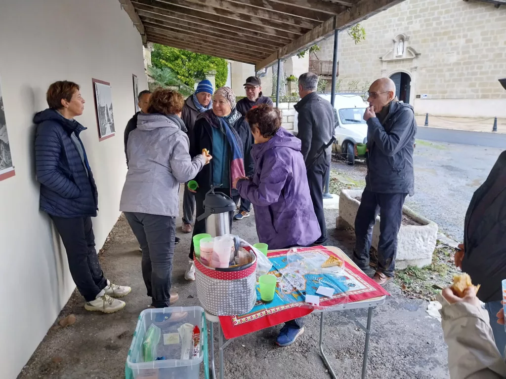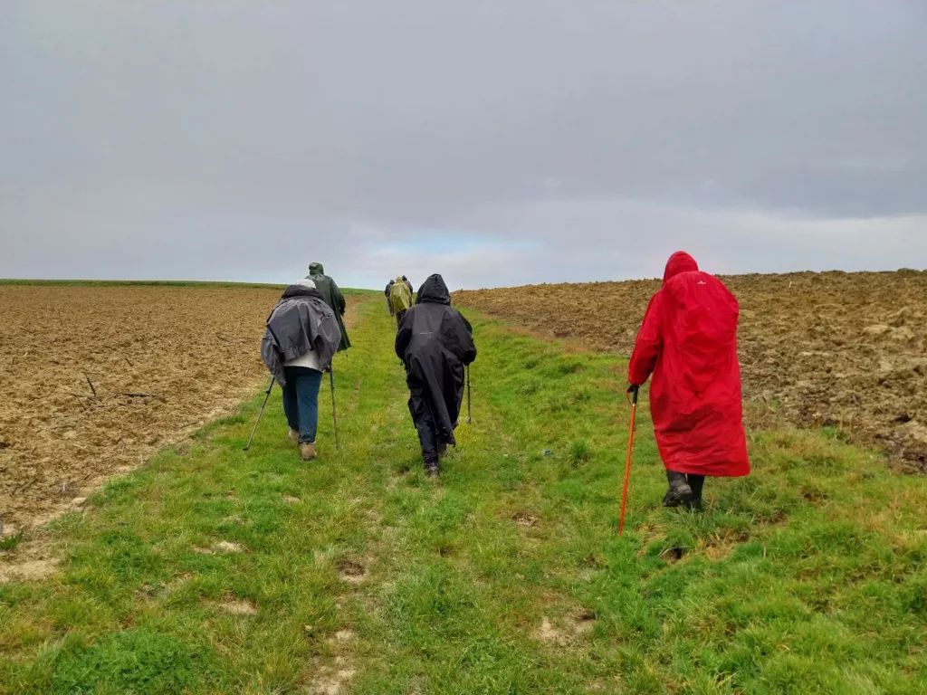 Terrain détrempé mais pas de gadoue car les chemins sont très herbeux, nos chaussures se sont bien mouillées mais sont restées propres, on ne l’aurait pas cru au départ de cette randonnée dans ces coteaux très argileux.
