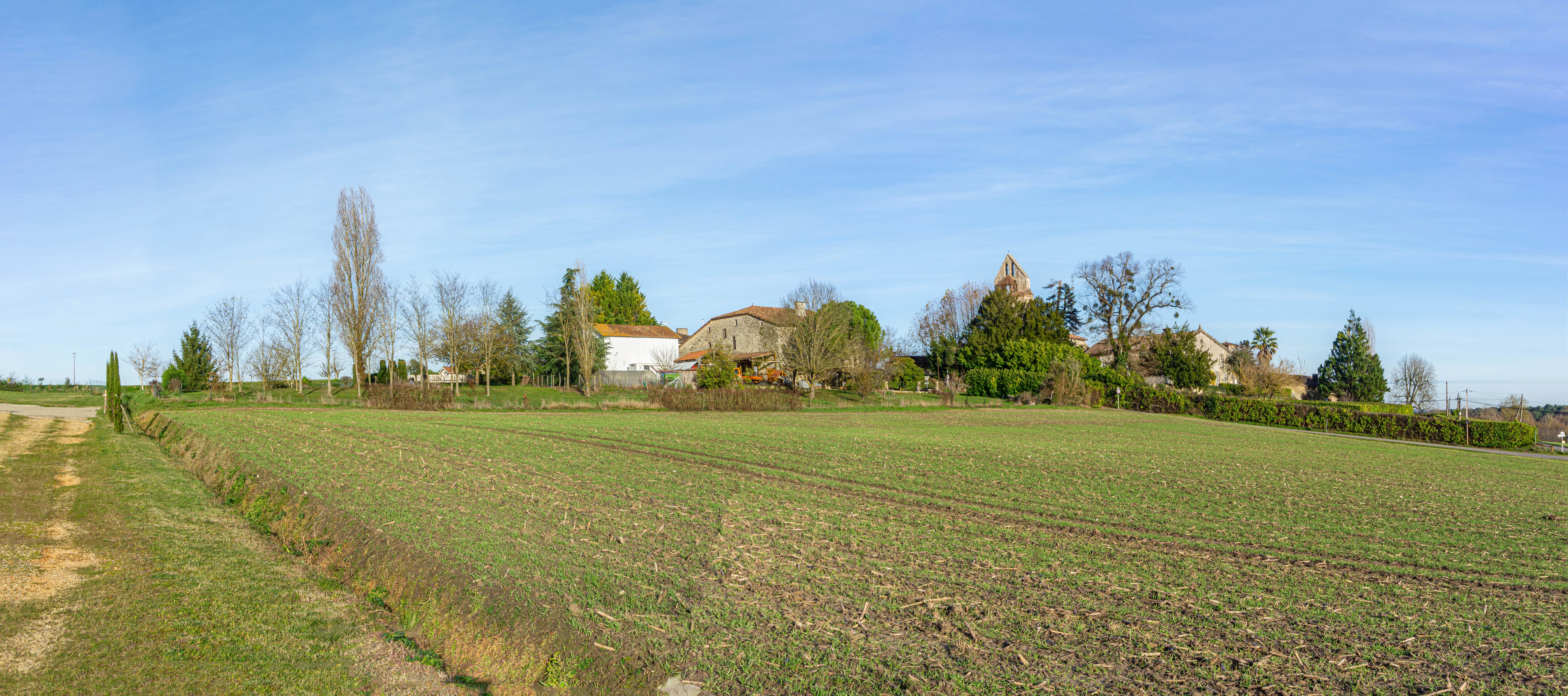 A mi-parcours on aperçoit notre prochaine étape, le petit village de Ruffiac.