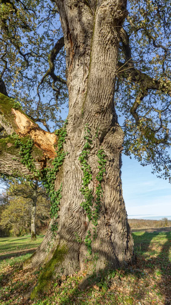 Nous retrouvons en cours de chemin ce chêne remarquable plus que centenaire qui nous émerveille à chaque fois que l’on passe dans ces lieux.