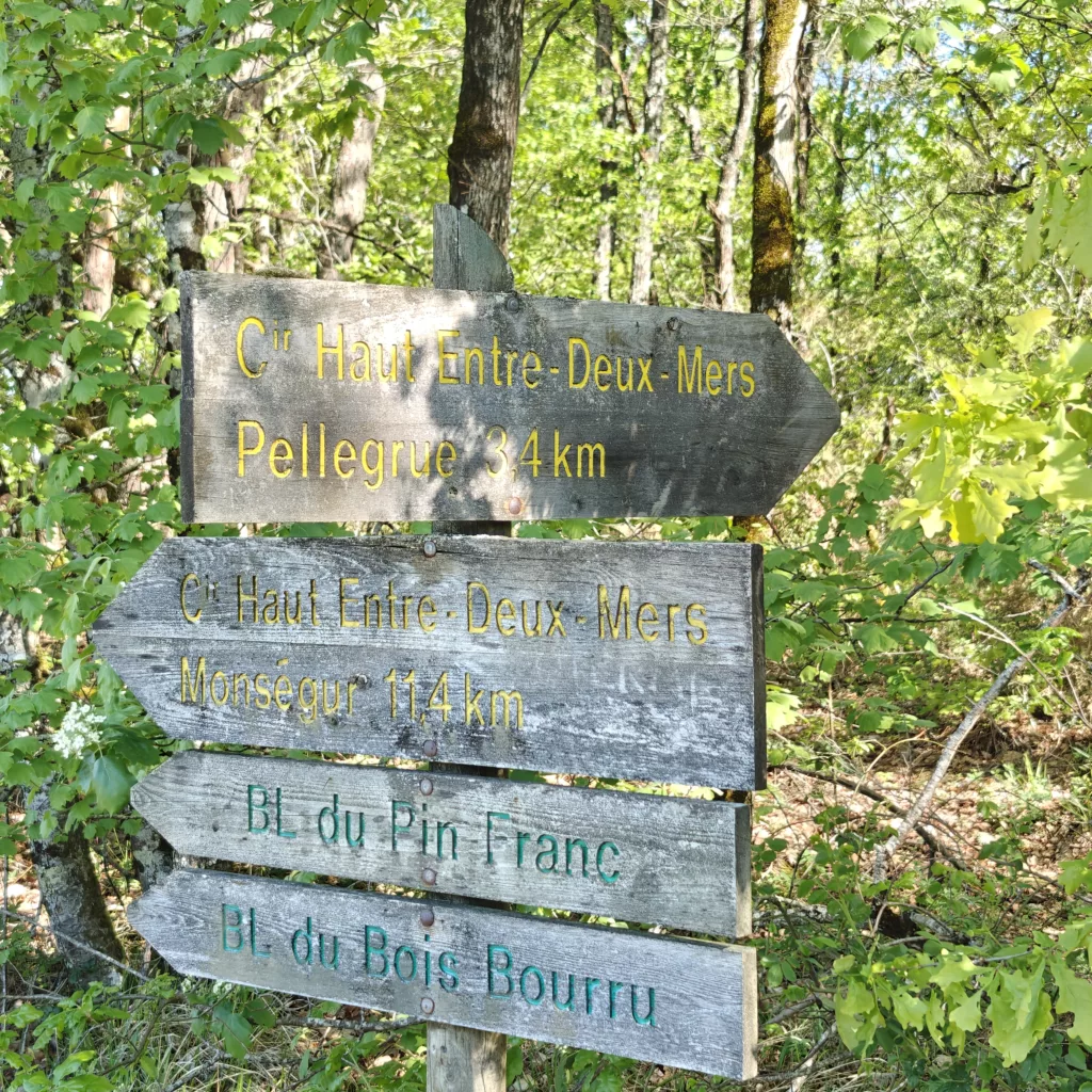 Cette randonnée allant jusqu’à Pellegrue, nous fait emprunter une partie du GR654 Ouest et le GR6.  En chemin, nous avons profité de cette belle journée ensoleillée et des paysages entre vignes, zones forestières et prairies en fleur.